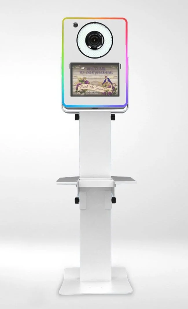 Our DSLR photo booth is equipped with a touch screen, high-end camera, LED ring flash, and photo printer. The photo booth features remote-controlled multi-colored LED edges that provide a brilliant ambiance, drawing guests towards the booth and commanding attention as the centerpiece of the event.